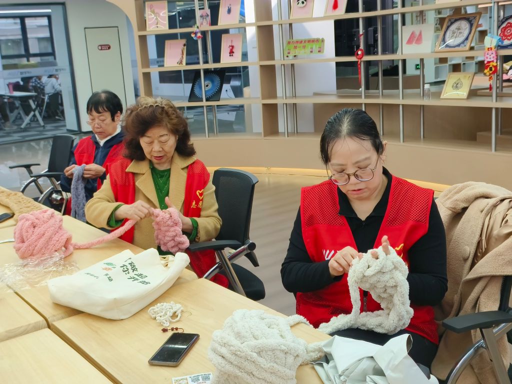 活动开始前,驻站社工链接“巧手公益坊”志愿服务队的队长周阿姨,与其说明活动内容与目标后,周阿姨热情地表示一定会带领队员完成这项“光荣”的任务。活动当天,社工为大家详细讲解了本次志愿服务的目的及意义,同时将编织流程、编制方法、编织过程中的注意事项呈现给大家。志愿者们纷纷动起手来,“怎么我的围巾编出来这么松,小杨快教教我。”在社工的指导和大家互相帮助下,逐渐掌握技巧,手指灵活地在绒线中穿梭着,很快,一个个可爱柔软的围巾就编织完成了,每一份围巾都承载着一份祝福,大家看着编织好的成品,心里也温暖了起来。“希望孩子们喜欢”、“希望能给孩子们带去身心的温暖”志愿者们纷纷表示。