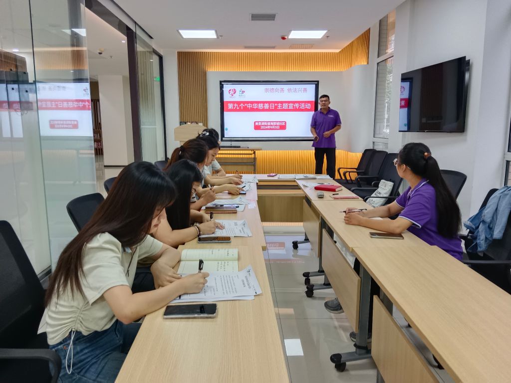 今天是我国第九个“中华慈善日”,为响应这一重要节日,深入学习关于慈善工作的重要精神,美里湖街道社工站联合海那城社区共同举办了以“崇德向善 依法兴善”为主题的宣传活动。