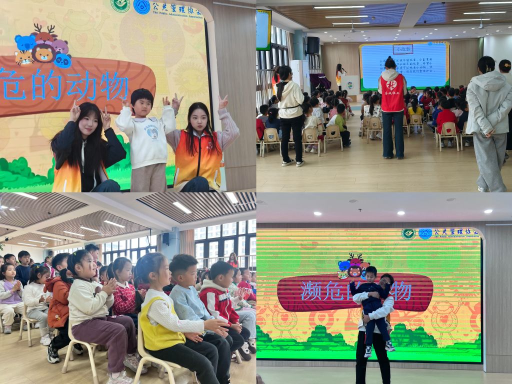 首先,在认识濒危动物环节由高校志愿者通过生动的图片、惟妙惟肖的表演和通俗易懂的语言,带同学们畅游了濒危保护动物的家园。趣味的讲解实现了知识传递与兴趣激发的双重目标。在谜语猜动物的环节,小朋友们积极参与、热情高涨,社工设计动物保护歌,邀请小朋们在歌声中记住濒危保护动物,培养他们作为环保小公民的意识。