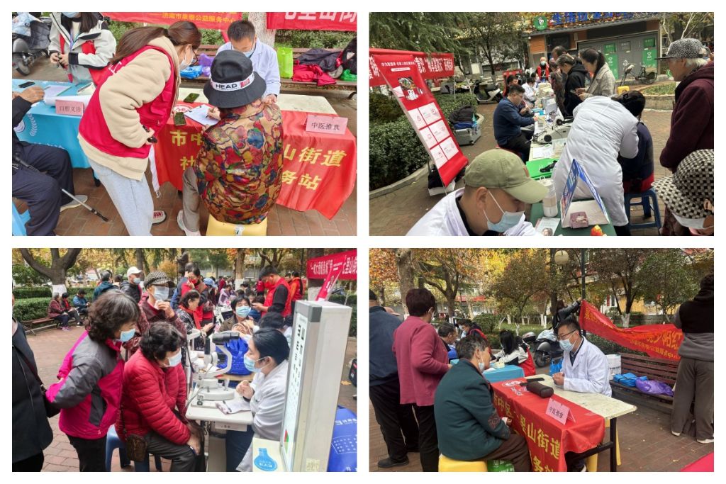 社工站在前期需求调研中发现,七里山南村小区老年人占比多,且普遍十分关心身体健康,希望能够参与公益义诊。为回应老年人健康需求,七里山街道社工站整合辖区资源,链接了北京微爱公益基金会、德正堂中医、爱尔眼科、可恩口腔、惠耳听力和济南肛泰肛肠医院、复大肿瘤医院等爱心企业,联合七西社区在孔子像广场开展了爱心集市活动。