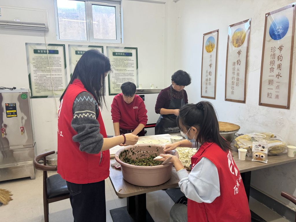 幸福院内,社工和志愿者们一大早就忙碌起来,准备饺子馅料和面团,大家分工明确,有的调馅、有的和面,现场气氛热火朝天。尽管外面天气寒冷,但幸福院内却是暖意融融,大家的热情让这个冬至不再寒冷。