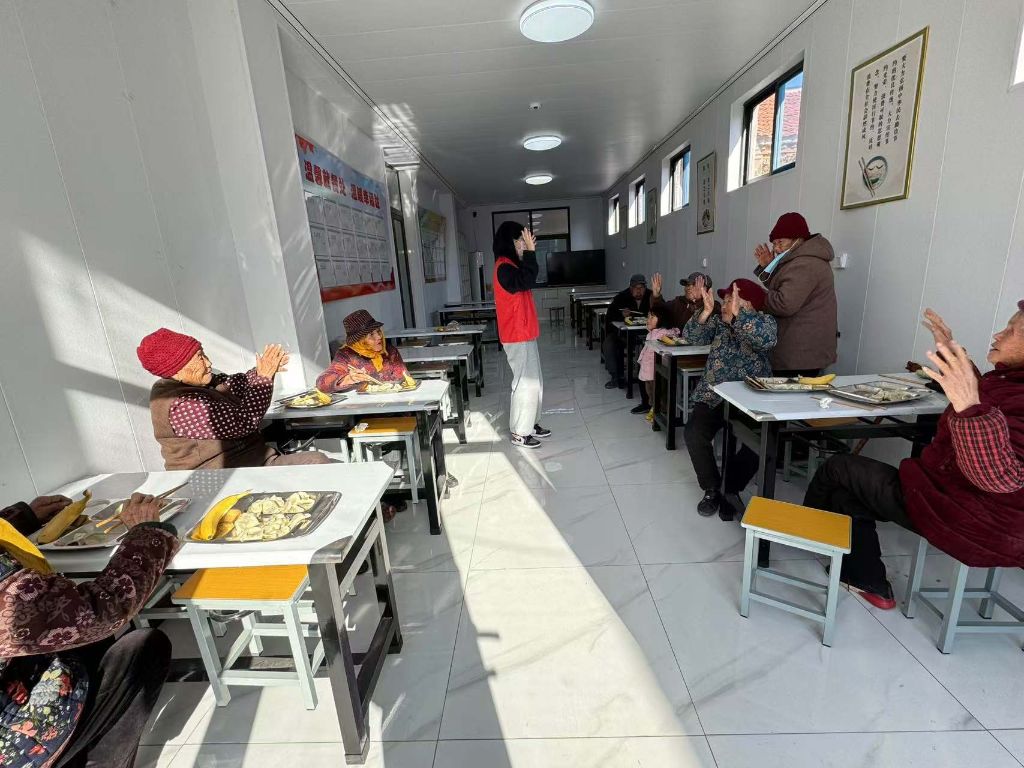 在包饺子的同时,社工还特别安排了手指操活动,让老人们在享受美食的同时,也能活动筋骨,增强身体素质。尽管有些老人的动作略显迟缓,但他们仍然尽力参与其中,脸上洋溢着幸福的笑容。