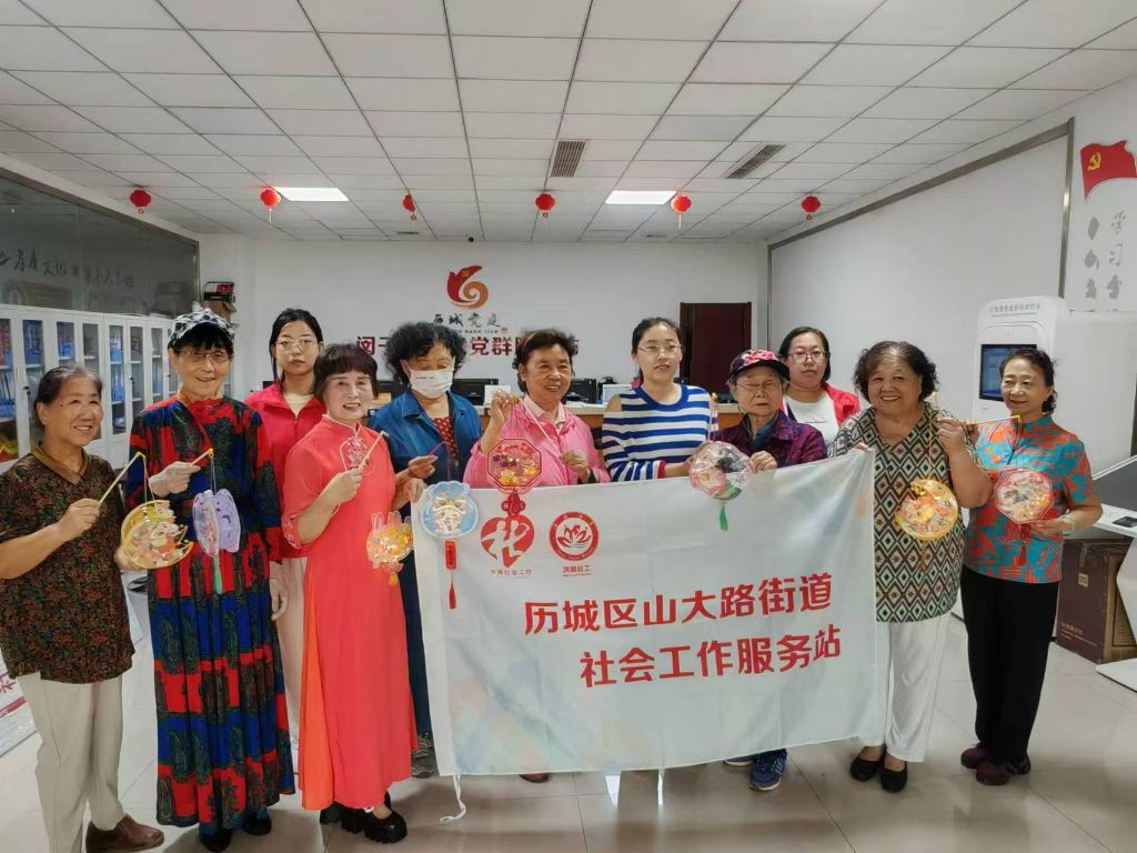 中秋节来临之际,为了提高老年人的生活乐趣与创造力,促进社区内的情感交流与互动,9月12日上午,山大路街道社工站联合闵子骞社区共同打造了一场充满温馨与创意的手工灯笼制作盛宴。