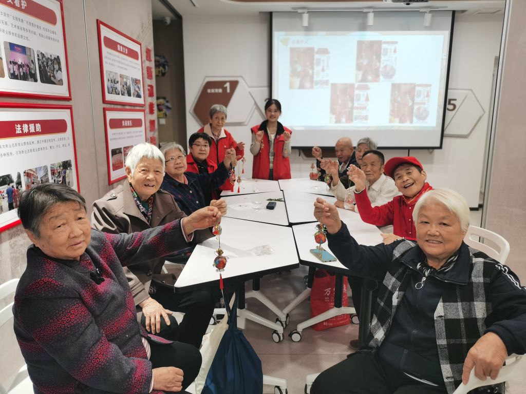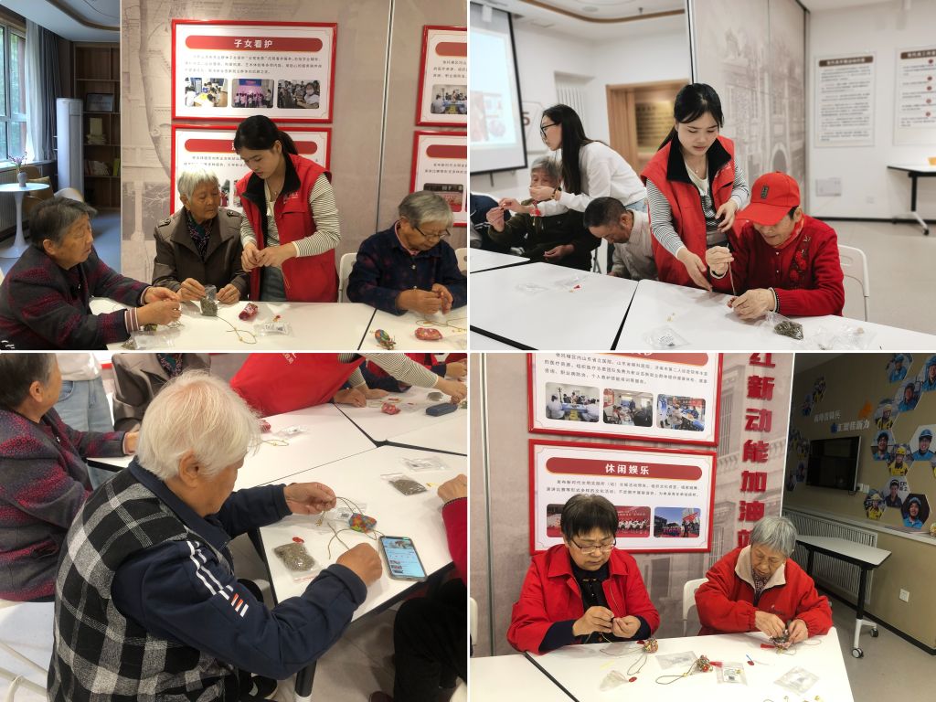 接着,社工们以生动的故事开场,讲述了重阳节的历史渊源以及茱萸在传统文化中的重要地位。茱萸,自古以来就被赋予了驱邪避灾、祈福长寿的美好寓意,而手工制作茱萸香囊更是将这份祝福具象化。在社工们的悉心指导下,老人们纷纷动手制作香囊。他们专注地摆弄着手中的材料,一针一线都凝聚着对生活的热爱和对健康的期盼。有的老人虽然手指不再灵活,但依然努力地穿针引线;有的则与身边的伙伴交流着制作技巧,欢声笑语回荡在整个空间。随着时间的推移,一个个精致的茱萸香囊在老人们的手中诞生。这些香囊色彩斑斓,散发着淡淡的草药香气,老人们欣赏着自己的作品,感受着节日的快乐。