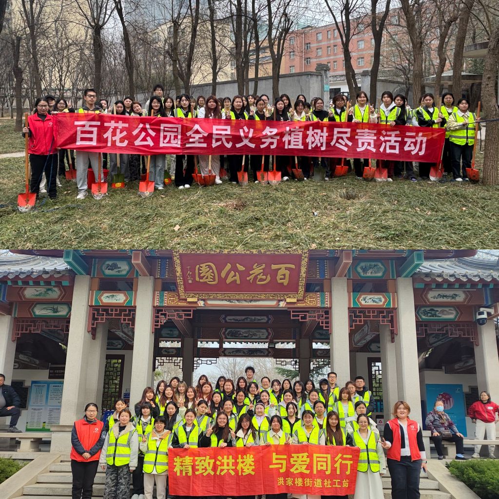 三月植树添新绿,满目春光映翠枝。3 月 12 日,植树节当天,洪家楼街道社工站联合李一鸣志愿服务队带领大学生们走进百花公园,开展了一场意义非凡的树木养护活动,以实际行动践行绿色环保理念,亲近大自然。