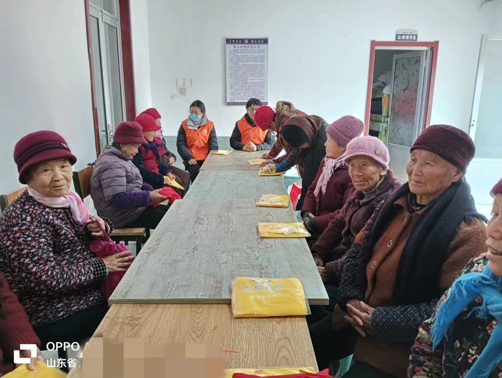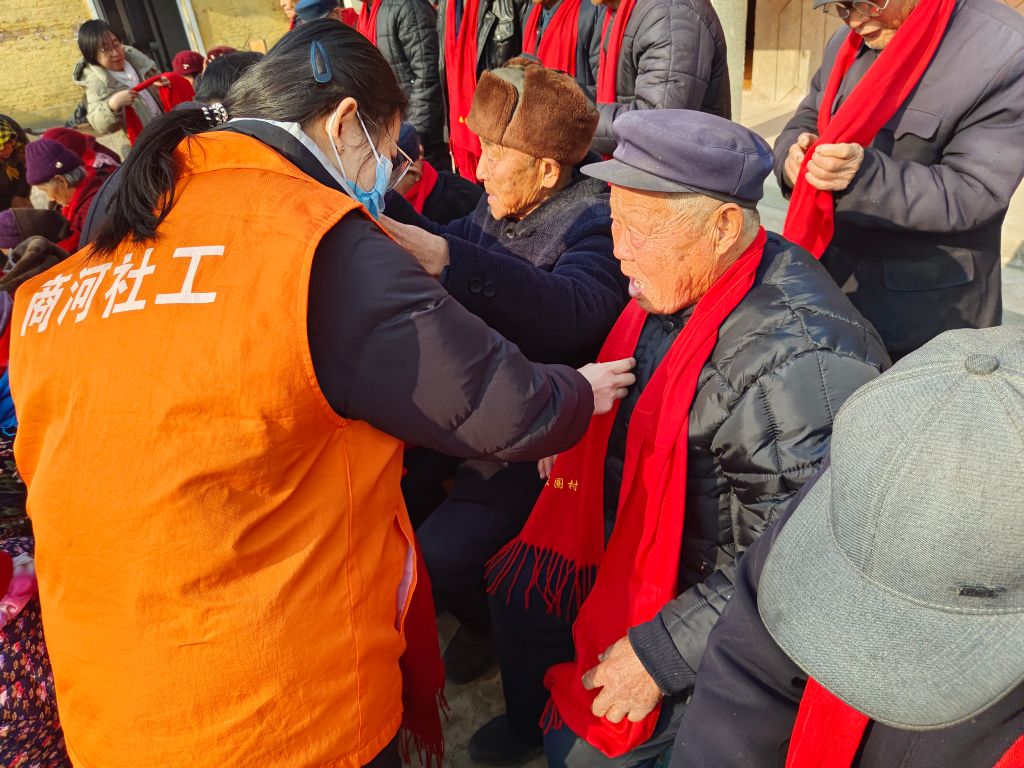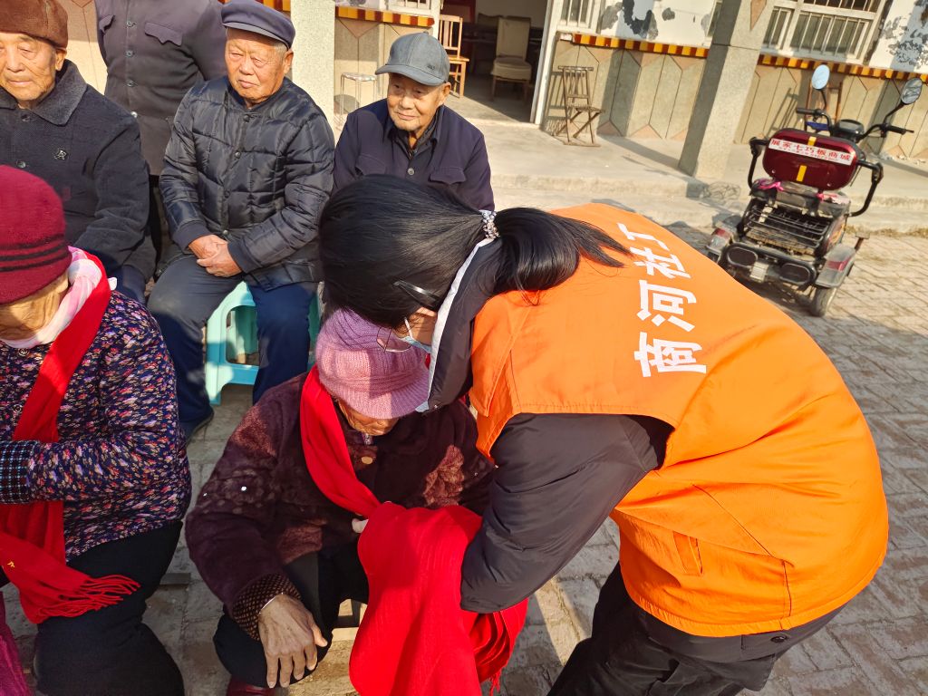 活动当天,郑路镇社工带着精心准备的围巾、围裙等慰问礼物,满怀热忱地走进秦家村幸福院。幸福院的每个角落都能看到社工们亲切的笑容和忙碌的身影。他们轻轻地为老人戴上围巾,让老人们在寒冷的冬日里感受到了浓浓的暖意。