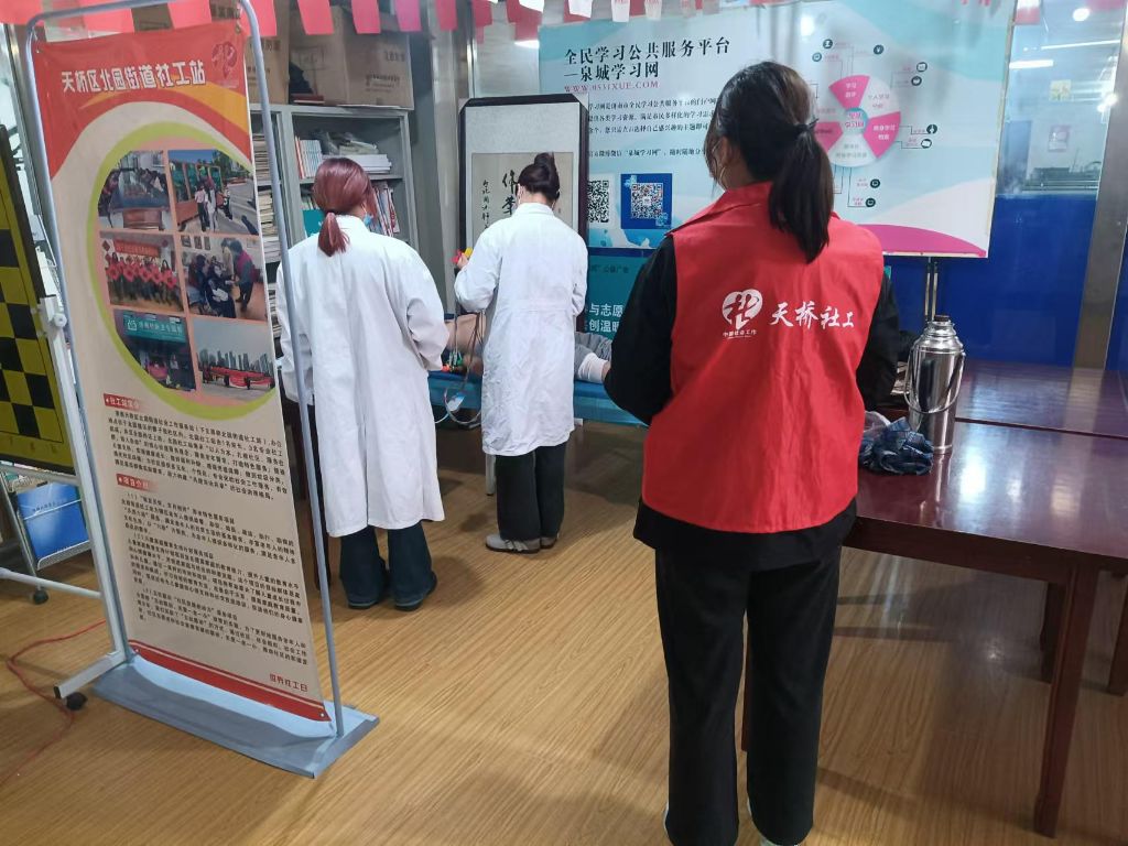 除了体检服务外,活动现场还设置了健康咨询台,由经验丰富的医生为老人们提供个性化的健康建议,并根据体检结果,指导他们如何调整饮食习惯、合理安排作息,以科学的方式维护自身健康。此外,社工站还准备了丰富的健康宣传资料,包括健康手册、养生小贴士等,免费发放给参与体检的老人,帮助他们更好地管理自己的健康。