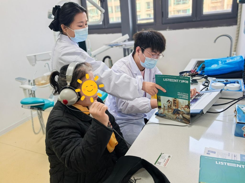 针对需要听力辅助设备的人士,社工协助医护人员进行专业的助听、康复辅助器具咨询与产品展示,还运用个案工作方法,深入了解听障患者的个性化需求,协助专业医生为他们制定专属的康复计划建议。听力验配师现场为听障患者免费进行助听器调机和检修,专家依据听力检测结果精准调试,社工则全程跟进,确保患者能理解调试过程及使用方法。