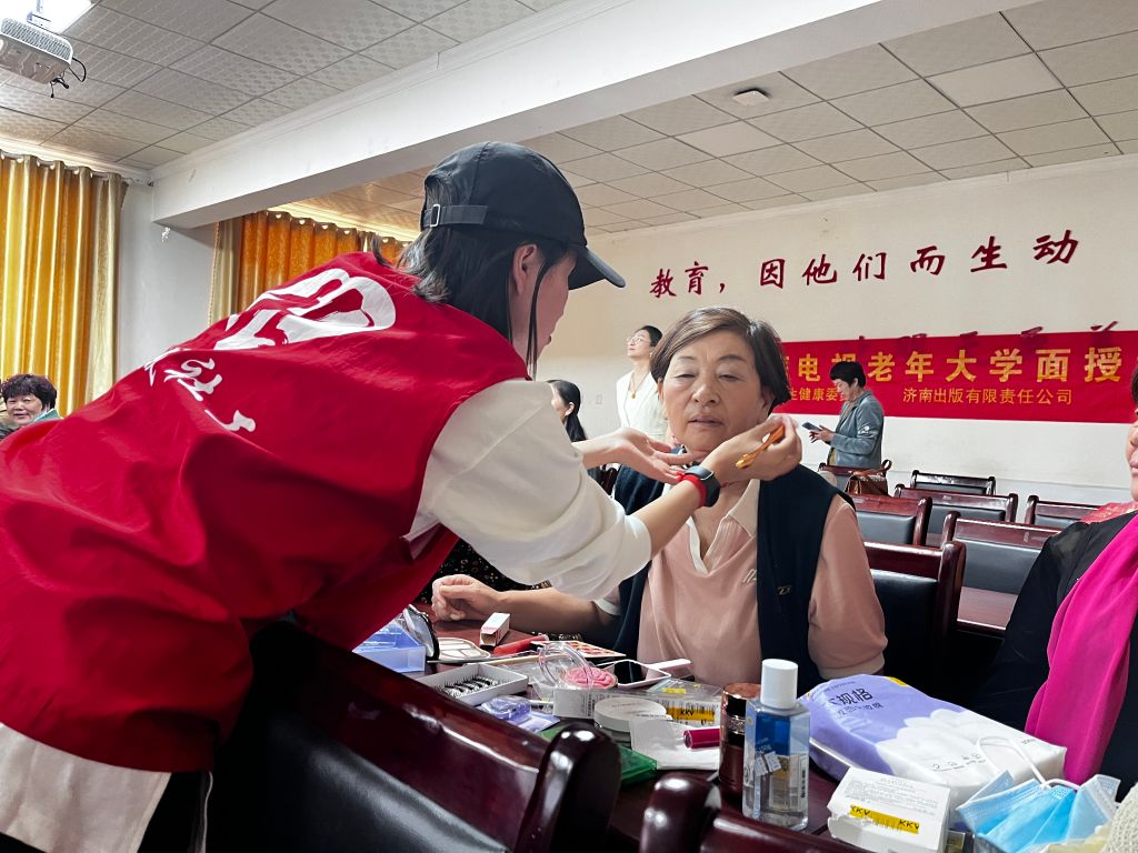 爱美之心,人皆有之。为满足老年人的精神文化需求,在家门口就能享受优质老年教育,展现老有所学、老有所乐、老有所为的精神风貌,9月26日上午,董家街道社工站链接济南家庭电视老年大学的老师在董家街道一楼会议室开展的老有所学 “妆”点夕阳魅力--老年人美妆增能活动。
