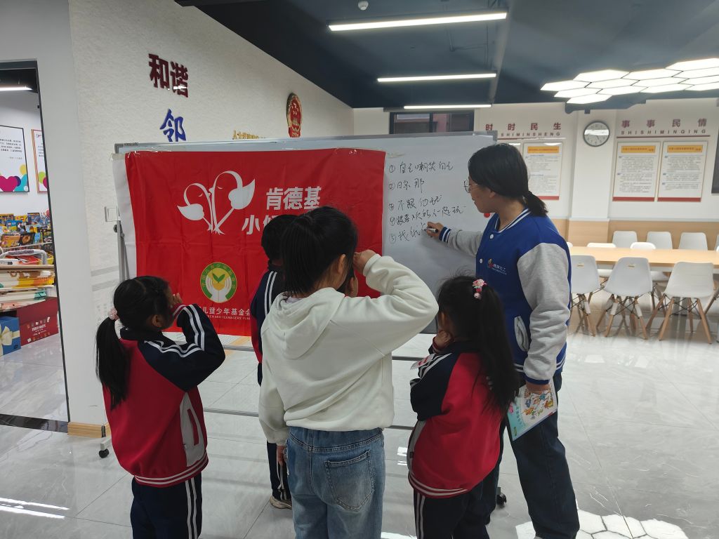 近日,济南市槐荫区吴家堡街道社会工作服务站(以下简称:吴家堡街道社工站)在中国儿童少年基金会和肯德基小候鸟基金的支持下,开展了“情绪小侦探”——小候鸟图书角“有爱陪伴”系列活动。旨在引导儿童学习应对嘲笑的方法,更好地排解因他人不认同而产生的负面情绪,培养儿童自主使用公共空间的意识,密切儿童与公共空间之间的联结。