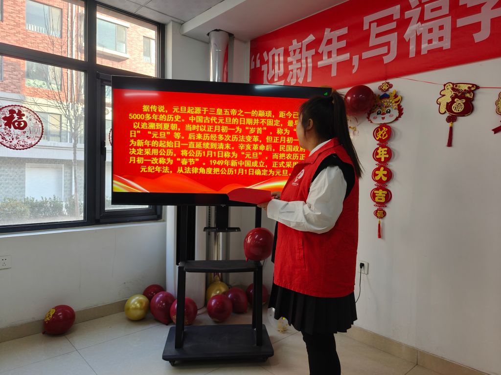 活动当天,社工站的社工与志愿者们早早地来到了现场,开始布置场地。红色的气球高高挂起,喜庆的对联贴满了墙壁,整个现场洋溢着浓浓的节日气氛。居民们也纷纷来到活动现场,脸上洋溢着期待和喜悦的笑容。活动正式开始后,首先由社工为居民们讲解了元旦的由来和文化内涵。她生动地讲述了元旦的历史渊源和演变过程,以及元旦在不同国家和地区的庆祝方式。居民们听得津津有味,纷纷表示对元旦有了更深入的了解和认识。