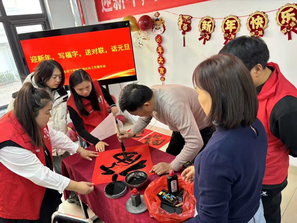 在元旦这个充满希望和喜悦的时刻,宁家埠街道社工站为社区居民精心策划了一场别开生面的迎新年活动——“迎新年,写福字,送对联,话元旦”。活动旨在弘扬传统文化,增进社区居民之间的情感交流,让居民在欢乐的氛围中迎接新年的到来。