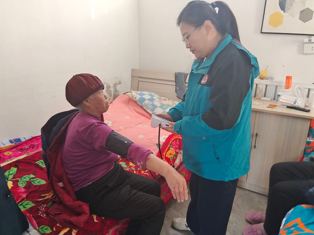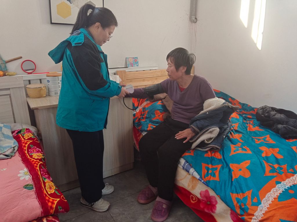 在寒冷的冬日里,曲堤街道社会工作服务站的工作人员和志愿者们走进辖区敬老院中,为他们提供细致入微的健康检查。
