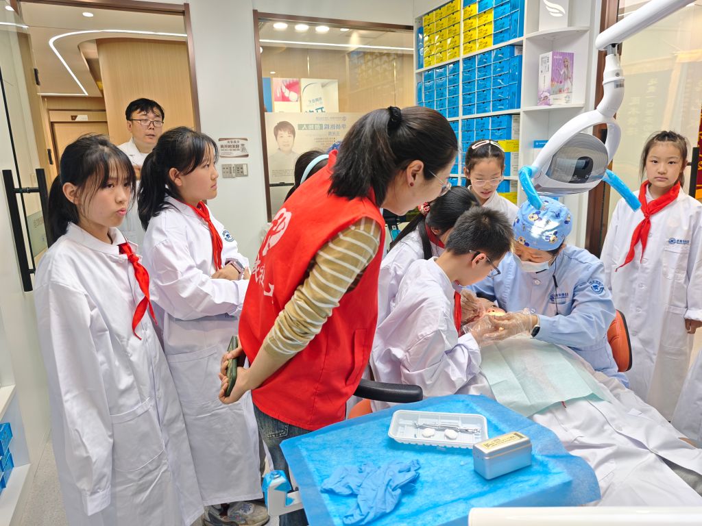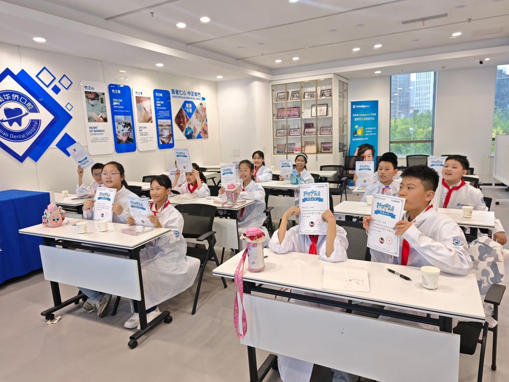 活动当天,学生们满怀期待地抵达现场。在专业牙医的指导下,孩子们穿上洁白的牙医工作服,手持口腔检查工具,正式开启 “小小牙医” 之旅。活动伊始,专业牙医通过生动有趣的讲座,向学生们深入浅出地讲解了口腔护理知识,包括正确的刷牙方法、龋齿的预防与治疗等内容,帮助孩子们掌握守护牙齿健康的关键秘诀。