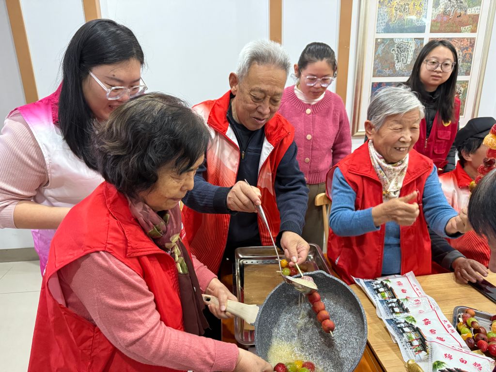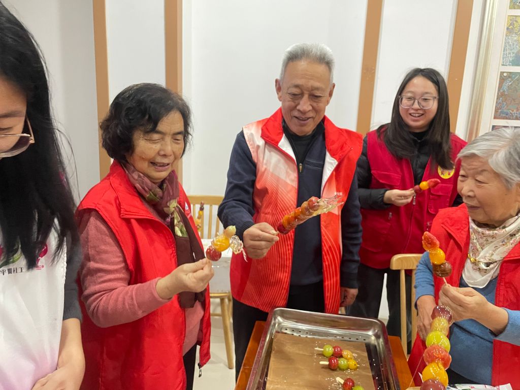 最后,老人们围坐在一起,品尝着自己亲手制作的糖葫芦,那份甜蜜与满足溢于言表。这一刻,他们不仅享受到了美食的甜蜜,更感受到了传统文化的魅力与温度,以及来自社工和社区的关怀与支持。