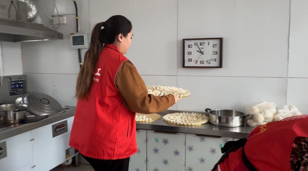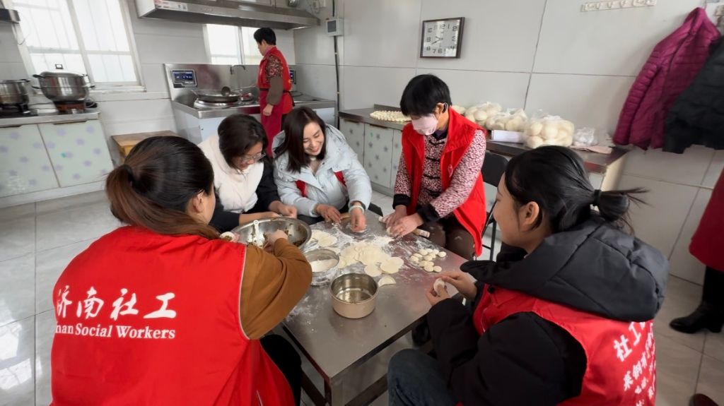 活动当天,社工和志愿者们早早地忙碌起来,和面、调馅、擀皮、包饺子,现场气氛热闹而温馨。大家分工协作,将一份份爱与祝福包进了一个个饱满的饺子里。