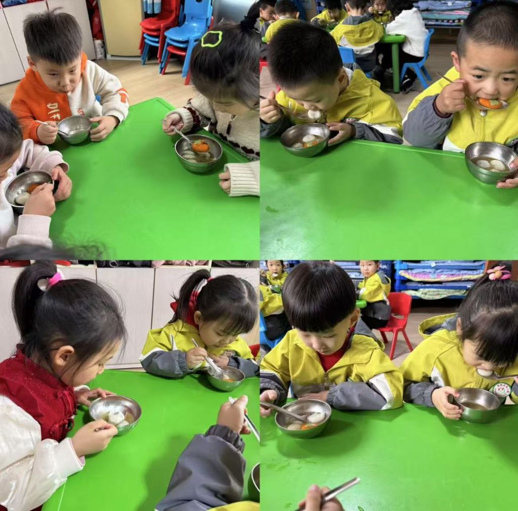 随着一碗碗热腾腾的汤圆端上来,孩子们迫不及待地吹凉汤圆,然后轻轻地咬上一口,软糯香甜的馅儿在口中化开,孩子们的脸上瞬间绽放出满足和幸福的笑容。