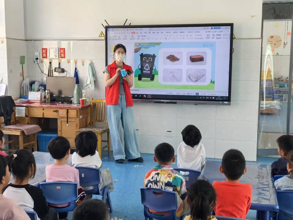 社工拿着制作的垃圾桶模型,详细地讲解了不同类型垃圾桶的颜色以及对应的分类垃圾种类,比如绿色垃圾桶用来放置厨余垃圾,蓝色垃圾桶是可回收物的 “家”,红色垃圾桶负责收纳有害垃圾,灰色垃圾桶则用于存放其他垃圾等。孩子们积极互动,争相抢答分类问题,现场欢声笑语不断。