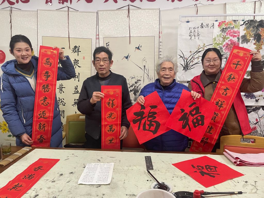 活动当天,社工站邀请了多位书法爱好者及书法家现场挥毫泼墨,为社区居民书写春联和福字。活动现场翰墨飘香,红纸铺展,书法爱好者们笔走龙蛇,一撇一捺间流露出对新年的美好祝愿。接着,社工们将带着新春祝愿的福字和对联精心打包,前往社区内的高龄独居老人家中。他们热情地与老人交谈,了解老人的生活状况和需求,为老人送上节日的问候和祝福。随后,社工们帮助老人贴对联,布置家居,让老人的家中充满了节日的喜庆气氛。