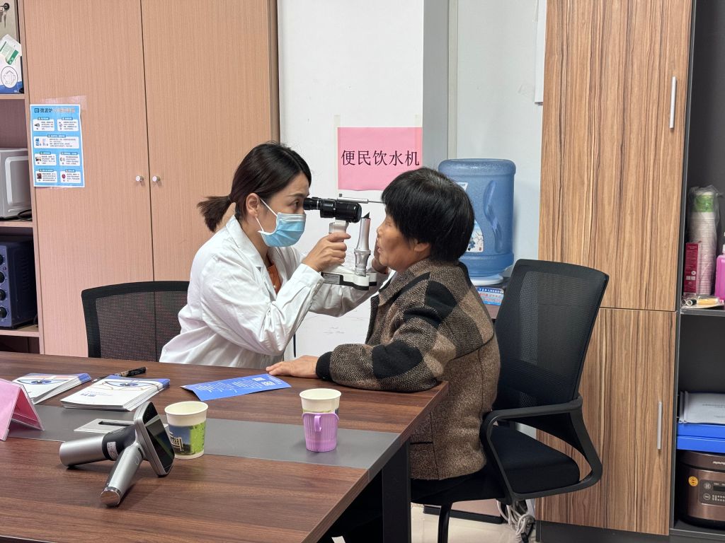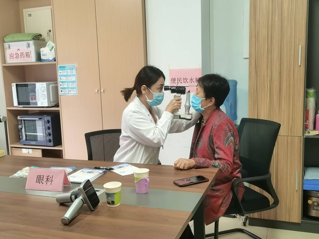 医护人员携带专业设备,为每一位前来检查的老年人进行了全面的眼部检查,包括眼底检查、白内障筛查等多个项目。在检查过程中,医生耐心细致地分析病情,解答居民关于眼部健康的疑问,并针对不同视力情况的老年人给出了个性化的治疗建议。