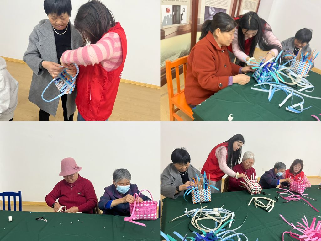 在活动过程中,有的组员凭借过往的编织经验迅速上手,而即便面对挑战,其他组员也展现出了不懈的学习态度和勇于尝试的精神。随着活动的深入,一个个精美的菜篮子逐渐成形。当看到自己亲手制作的成果时,老人们无不露出了欣喜和自豪的笑容。这不仅是对自我能力的肯定,也是对传统工艺的一种传承和尊重。通过这次活动,老人们不仅学会了新的手工技能,更重要的是,他们在这个过程中结识了新朋友,加强了彼此之间的联系,感受到了社区的温暖和归属感。
