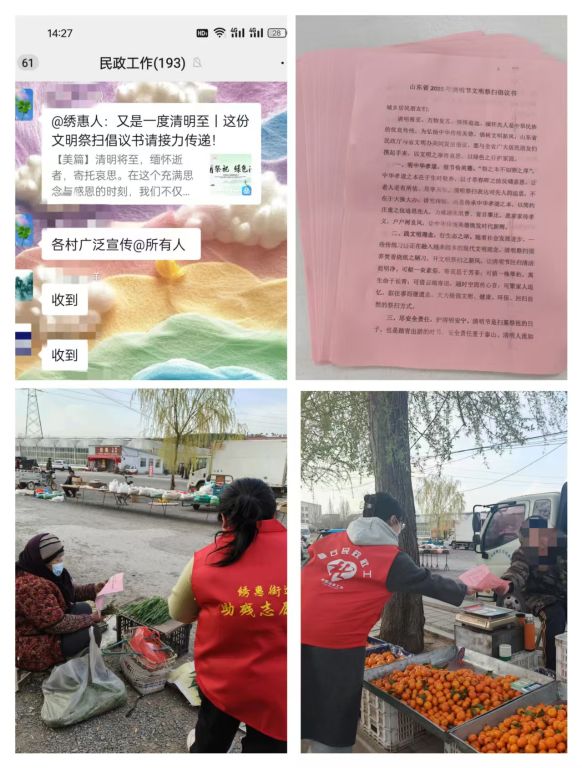 清明时节,追思先人。为倡导文明祭祀新风,减少火灾隐患和环境污染,绣惠街道社工站联合残联工作人员、网格员,开展“文明祭扫 平安清明”主题宣传活动,引导公众树立绿色、文明的祭祀观念,共同营造一个和谐、安宁的节日氛围。
