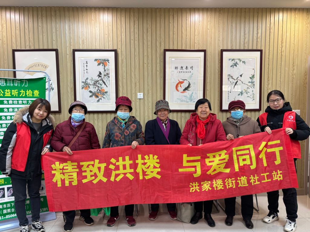 在老龄化社会进程不断加速的今天,老年人的健康状况成为社会关注的焦点。为切实关爱老年群体听力健康,增强居民爱耳护耳意识。3 月 6 日,洪家楼街道社工站携手洪楼广场社区,成功举办了一场别开生面的 “银龄守护,听见温情” 听力健康义诊活动,为社区老年人送上了温暖而贴心的健康关怀,活动现场吸引了众多居民踊跃参与。
