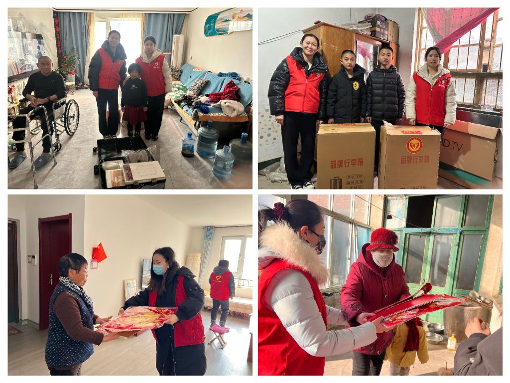 社工联合社会组织、爱心人士、志愿者,针对不同家庭的需求开展了不同内容的活动,包括物资慰问、健康关怀等。社工为孩子们送去了学习用品、衣物和行李箱等实用物资,希望能够在物质上给予他们一定的帮助。为困境老人送去寓意吉祥、充满美好祝福的春联及福字,与老人们亲切交谈,深入了解他们的身体及生活状况,提前祝福他们新年快乐。