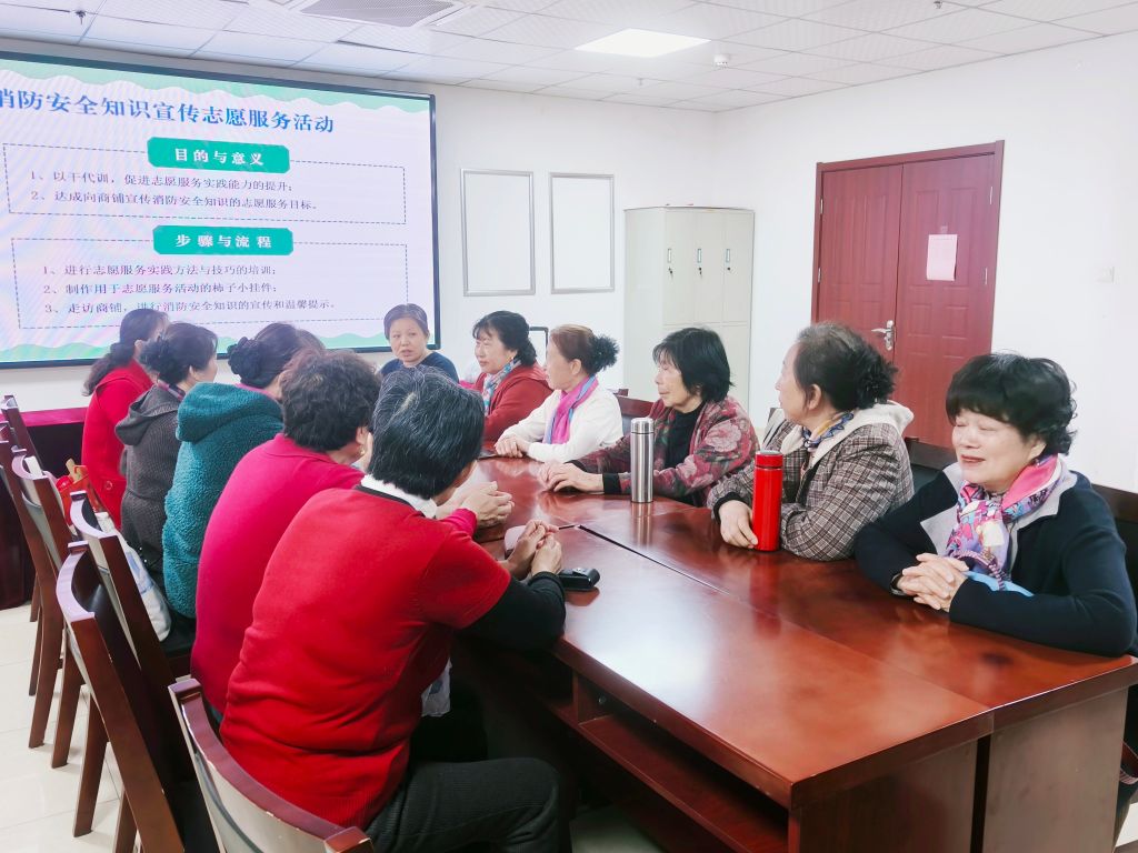 社工首先向秧歌队成员介绍了此次志愿服务活动的意义与目的,一是通过具体实践服务促进志愿服务实践能力的提升,二是达成向商铺宣传消防安全知识的志愿服务目标;秧歌队负责人潘福美向成员说明了此次活动的步骤与流程,并鼓励大家齐心合力完成志愿服务活动。