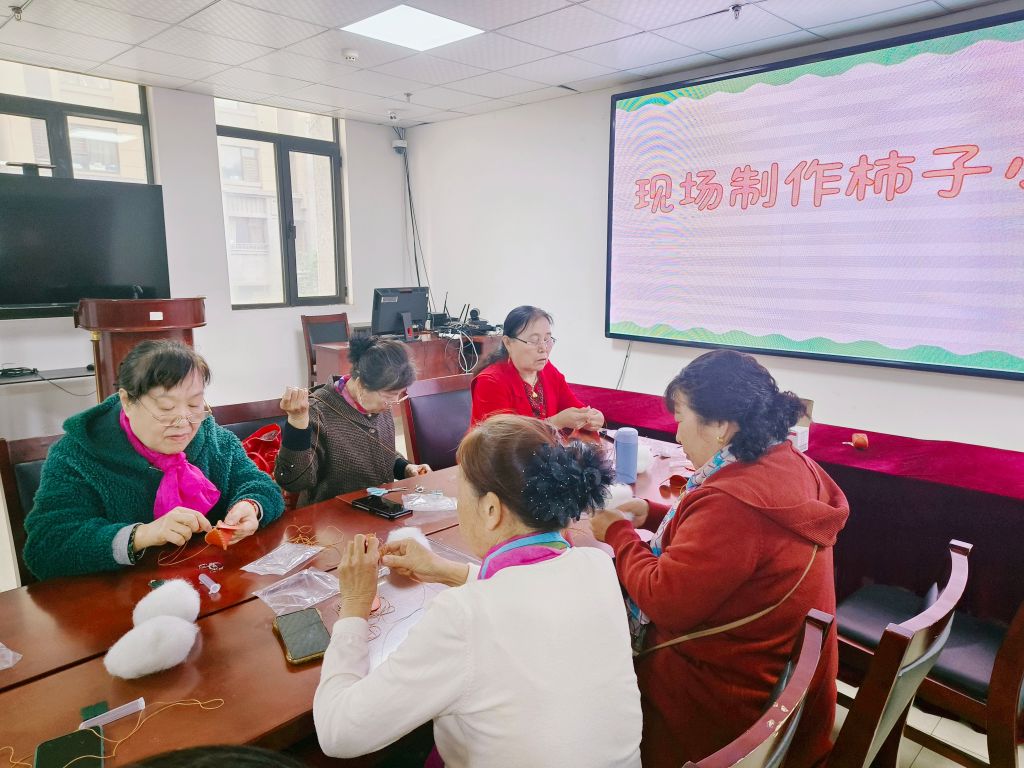 接着,社工向团队成员讲解了在与服务对象交流时如何介绍自己、如何说明服务意图和服务内容等志愿服务方法与技巧;随后,社工带领团队成员一起制作了志愿服务中用到的柿子小挂件,成员们专心学习和制作,希望借助亲手制作的小挂件将爱心提醒和美好祝福传递给商铺经营者。