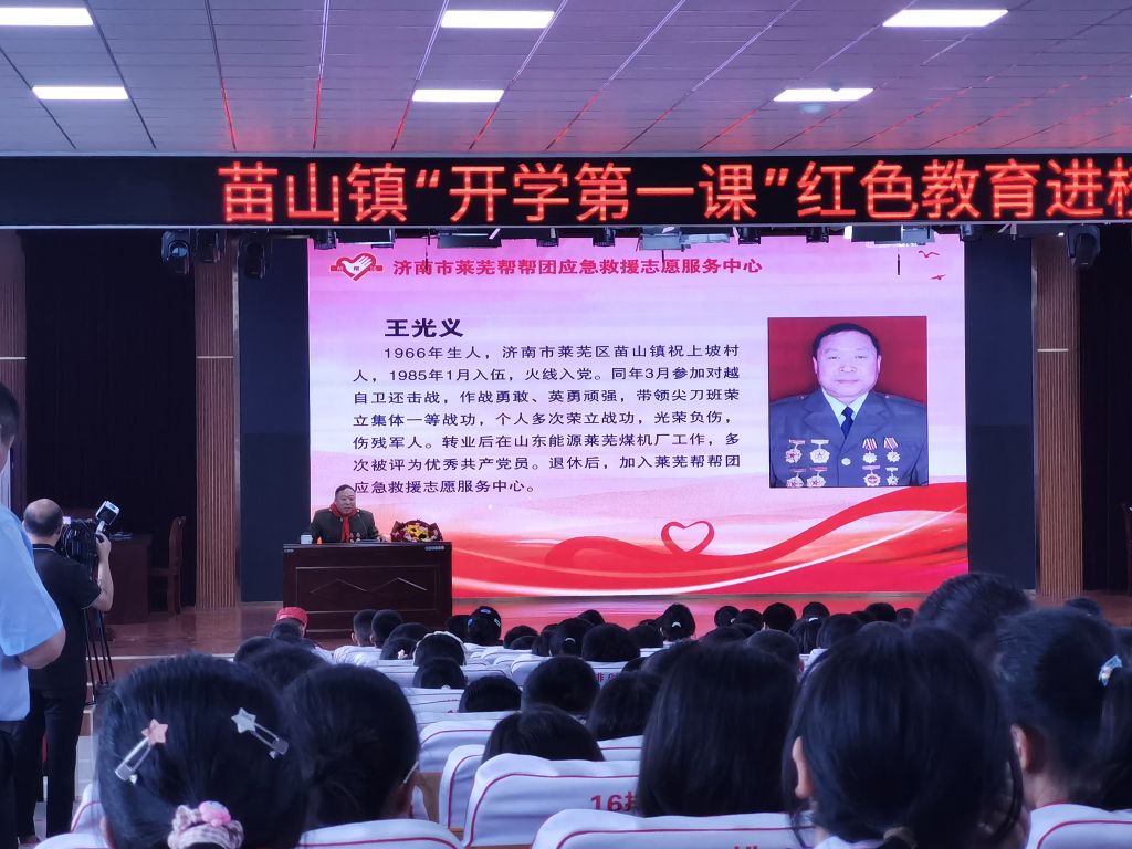 秋风送爽,丹桂飘香,又是一年开学季。为弘扬红色文化,深化中小学生爱国主义教育,9月2日,苗山镇民政办联合苗山镇社工站、莱芜帮帮团应急救援志愿服务中心特邀参战老兵王光义爷爷走进苗山镇中心小学,上好“开学第一课”,厚植红色基因,筑牢信仰之魂。