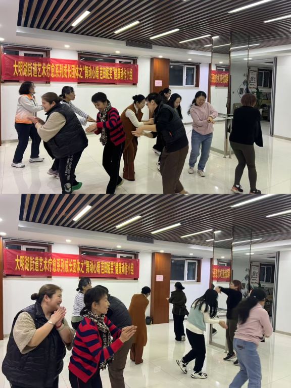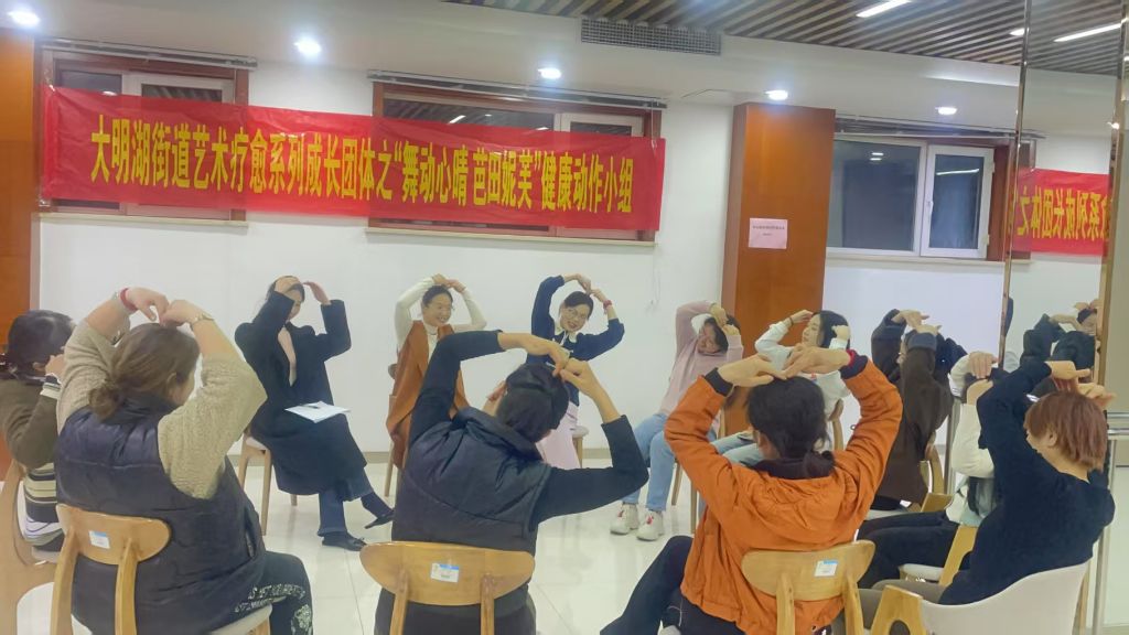 为了关爱社区居民的身心健康成长,2025年大明湖街道、街道社工站、街道社会心理服务站联合启动艺术疗愈系列成长小组活动。其中,“舞动心晴”芭田妮芙健康动作小组于2月14日(正月十六)正式拉开帷幕,为10余名居民带来了一场别开生面的身心盛宴。