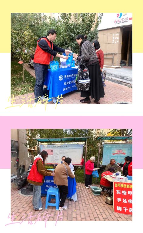 为进一步提高社区居民的健康意识,将优质医疗资源推广至社区基层,优化居民的就医体验,12月10日,泺口街道社工站携手济南华侨口腔医院、乐泰亮甲公益组织,在社区广场成功举办了“暖冬义诊行 健康有“医”靠”义诊活动,让社区居民在“家门口”享受到便捷的就医服务。