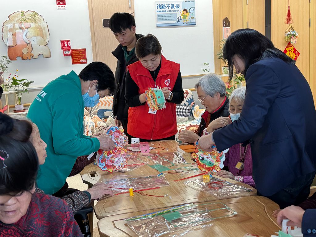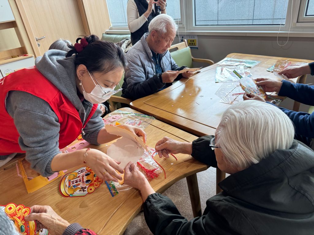 活动现场,社工们早早准备好制作灯笼的材料,耐心地向老人们讲解制作步骤。在制作过程中,社工们时刻关注老人的需求,手把手协助行动不便的老人完成灯笼组装,帮助他们穿线、穿插彩纸,让每一位老人都能参与其中。在社工们的引导下,老人们充分发挥想象力,一个个造型独特、色彩鲜艳的灯笼在大家手中诞生。这些灯笼不仅承载着老人们对新年的美好期许,更凝聚着社工与老人之间的深厚情谊。