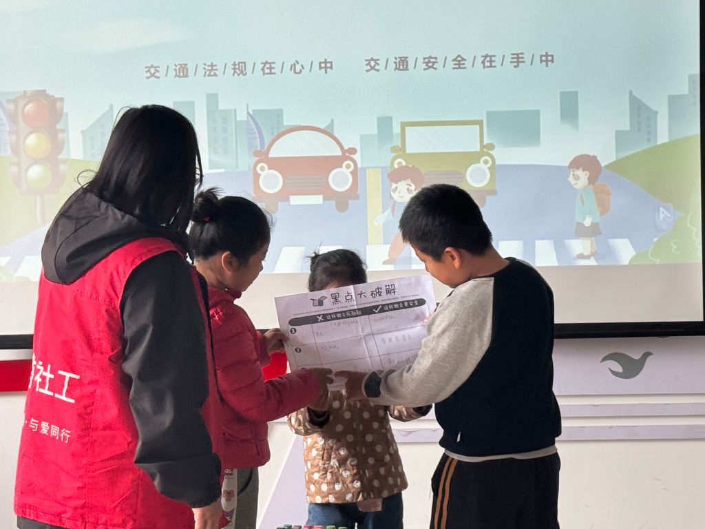 “黑点大破解”环节也备受小组成员的喜爱。社工引导小组成员回忆社区漫步时发现的交通安全隐患,如路口没有红绿灯、路边井盖不牢等。并围绕发现的交通安全隐患进行深入的讨论,分析这些隐患可能带来的后果。通过讨论和相关安全知识的问答游戏,找出破解这些交通隐患的方法,加深小组成员们对交通环境中的潜在危险的认识,提高他们的自我保护能力。