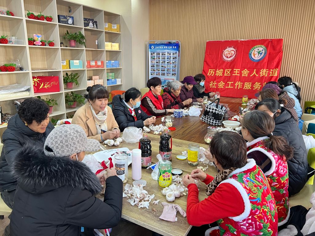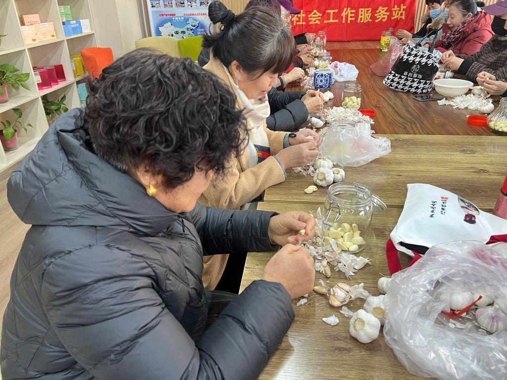俗话说过了腊八就是年,腊八节是我国的传统节日,每到腊八节,家家户户都会煮上腊八粥,泡上腊八蒜。为弘扬传统文化,丰富社区老年居民文化生活,增进老年居民感情交流,1月7日,王舍人街道社工站在魅力之城社区日间照料中心举办“腊八盛宴 蒜香传情”巧手共制腊八蒜活动。