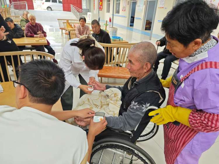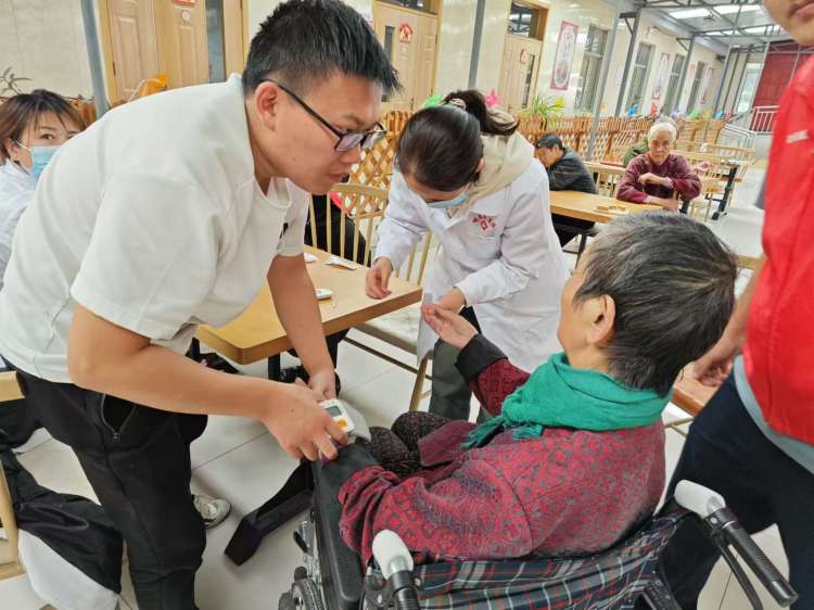 伴随着老人们的陆续到场,医护人员开始对老人们进行体检,包括血压、血糖,等相关检测项目。检测过程期间,医护人员也嘱咐各位老人,平常的生活中一定能注意合理的饮食、保持健康的作息规律,可以多参与院内组织的沟通交流活动,养成积极乐观的内心世界。