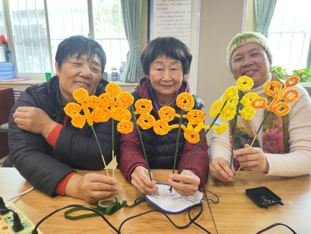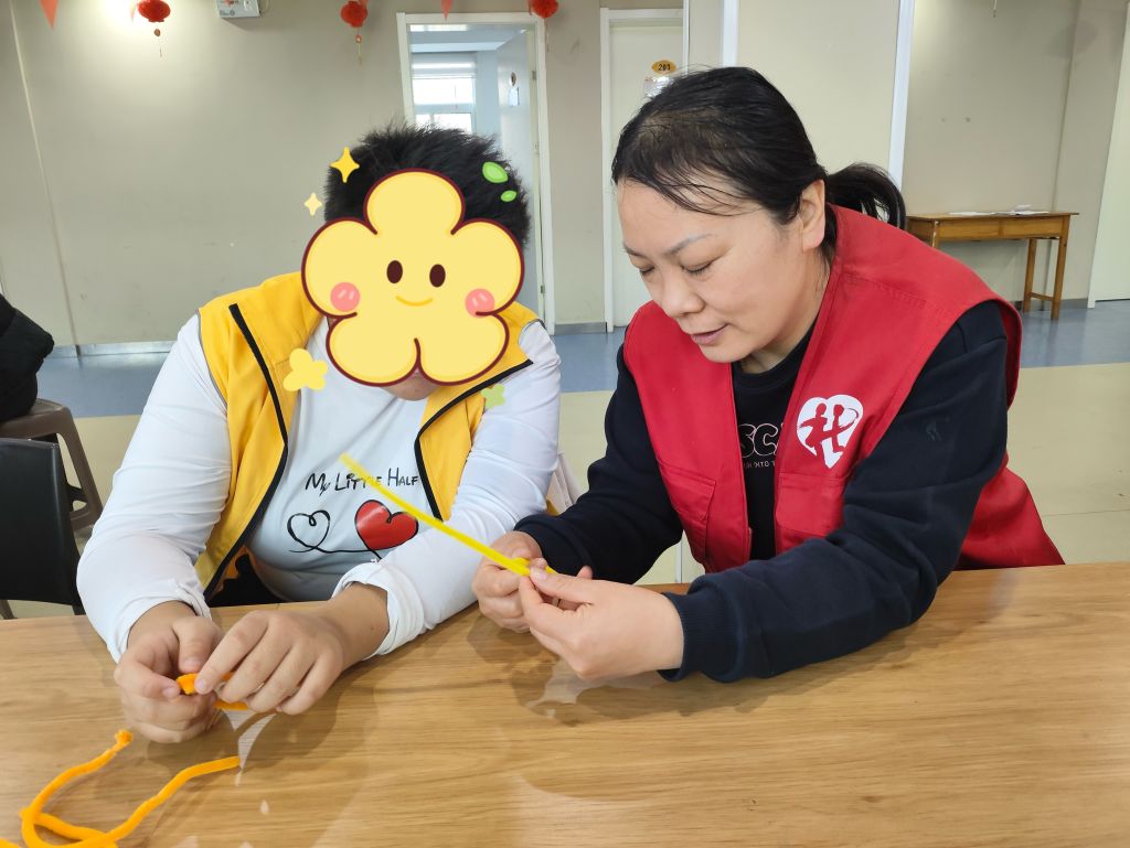 活动当天,社工们精心准备了各种颜色的扭扭棒和制作工具,将泺源学校的孩子们与社区的老年居民聚集在一起。活动开始,社工首先运用“破冰游戏”技巧,通过“你问我答”的互动环节,打破了年龄界限,让老少双方在笑声中迅速熟悉起来,为接下来的手工制作奠定了良好的氛围基础。