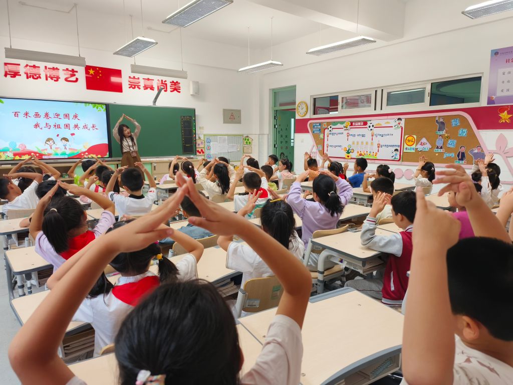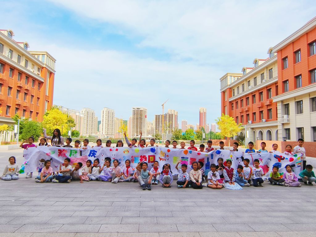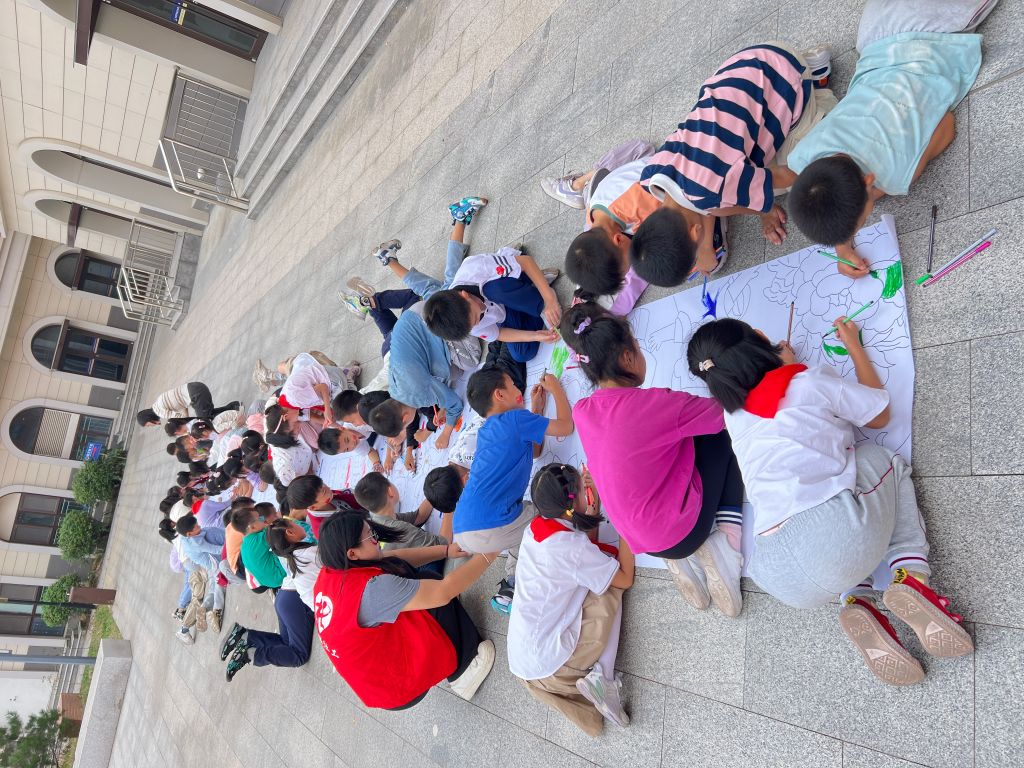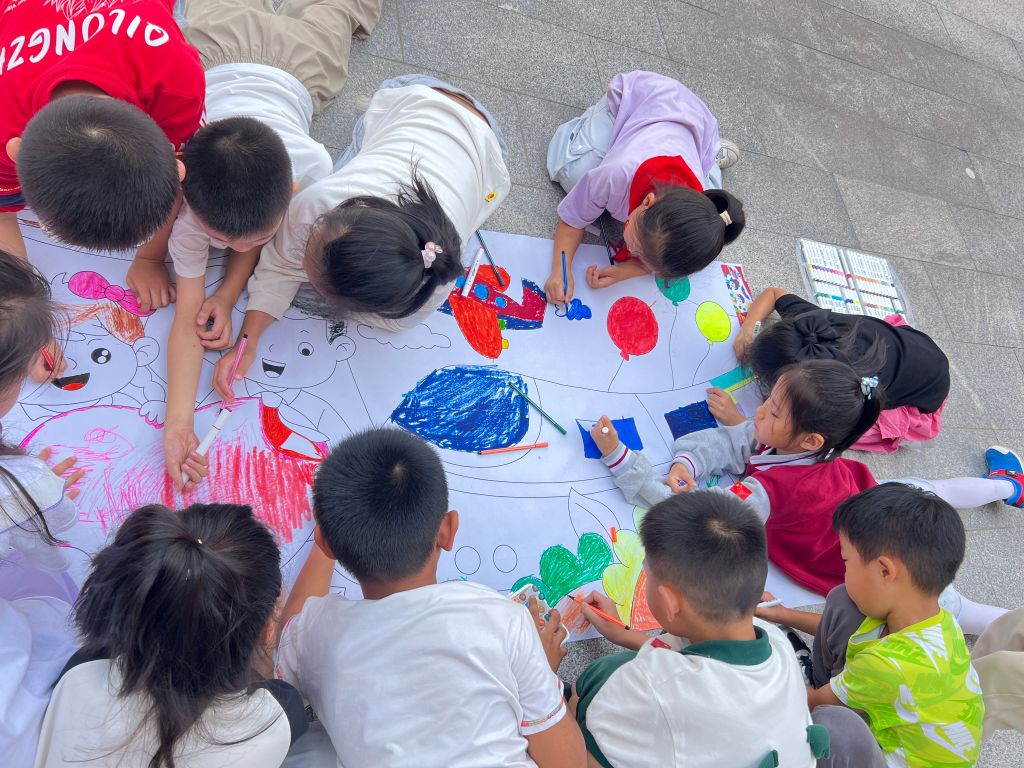 活动现场,驻站社工向孩子们介绍国庆节的来历及相关知识,孩子们全神贯注地听着,通过紧张刺激的问答环节,使国旗、国徽等元素深深烙印在孩子们心中,不断加强对“祖国花朵”的爱国主义教育。大家共唱《我和我的祖国》,配合生动的手势舞,将活动推向高潮。随后,在社工及老师的引导下,孩子们手握画笔,在“百米画卷”上尽情地勾画,描绘着对祖国深深的热爱。 在大家的配合下,一幅充满童趣的画卷呈现眼前,一笔一画,尽是对祖国母亲的美好祝福。