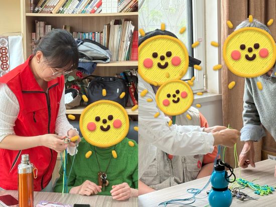 活动中,社工以专业与温情为纽带,为参与者提供全流程支持。从编织技巧的耐心指导,到心理疏导的暖心陪伴,社工们化身“编织导师”与“心灵伙伴”,助力残疾人朋友突破身体局限,用双手将创意转化为作品。此外,社工们还在现场组织了劳动故事沙龙和分享环节,让参与者们在轻松愉快的氛围中进一步增进彼此之间的了解和友谊。肢体残障人士师阿姨分享道:“每一根绳子都像我的人生轨迹,弯弯绕绕却始终向前,是劳动让我找到了新价值。”