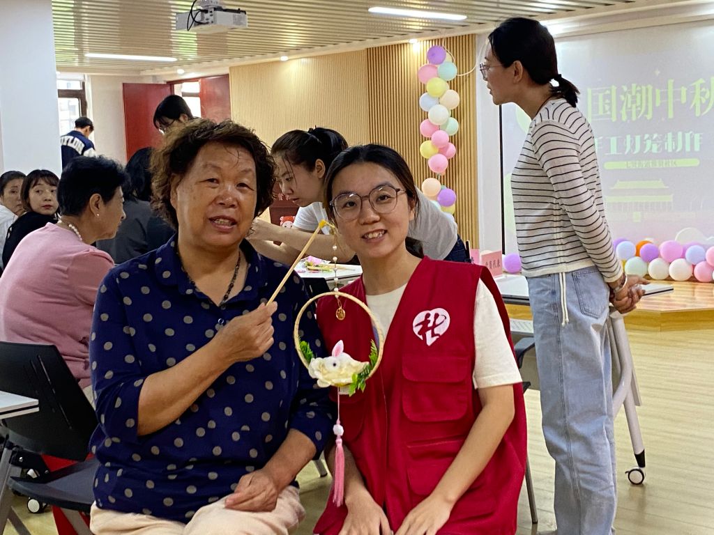 活动伊始,社工介绍了中秋节的来历和传统习俗,随后将提前准备好的制作灯笼的材料包进行发放,详细讲解制作灯笼步骤。在社工与志愿者的协助下,老人们神情专注,认真地跟随着步骤,安装灯架、挂灯线,一步步地将零散的灯笼材料进行粘贴、拼接、组装起来。不一会儿,一盏盏精美的花灯呈现眼前,大家纷纷展示自己的作品,脸上洋溢着满足和喜悦的笑容。