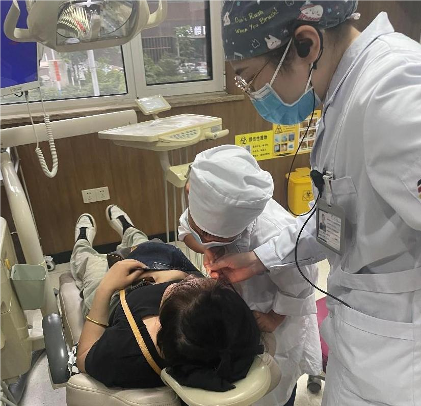 活动现场气氛热烈且温馨。宝华新居卫生服务中心的医生们秉持专业与耐心,全身心投入,有条不紊地为家长和孩子们进行全面口腔检查,同时主动指导儿童参与检查。在医生细致教导下,孩子们克服紧张,勇敢拿起口腔检查工具,小心翼翼地为家长检查。他们专注的眼神、轻柔的动作,处处彰显对父母的爱意。