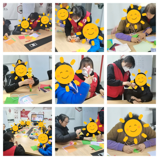 接着,社工引导孩子们和家长们共同参与了手工折纸花束的制作活动。这一活动不仅仅是一次简单的手工创作,更是情绪管理实践的延伸。通过动手折纸,孩子们能够集中注意力,舒缓内心的压力,同时,社工引导每位参与者将自己的情绪与所折纸花的形状、颜色相联系,鼓励孩子们通过艺术创作表达自己的感受,在创作过程中培养耐心和细心。家长们与孩子们一同完成每一朵纸花的折叠与拼接,社工鼓励家长们在这个过程中给予孩子更多的支持与鼓励,帮助孩子感受到来自家庭的温暖和理解。