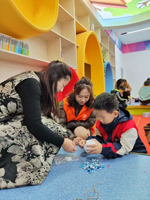 阅读结束后,社工继续带领孩子们来到亲子互动环节,今天亲子互动游戏是孩子和家长一起制作马赛克花瓶,社工详细介绍着制作流程,孩子们及家长们认真听着并开始跃跃欲试,大家相互交流着充分发挥丰富的创造力和想象力,通过贴、刷、擦等动作把马赛克贴片塑造成一个个美丽的花瓶。亲子互动活动不仅促进着亲子间的正向沟通,加深对彼此的理解,让家长们更多的关注于关系中的积极面,同时帮助家长和孩子共同觉察关系中的“我你”状态和互动模式,探索亲子间的相处之道。2024年的亲子共读系列活动也在颁奖仪式下温馨落幕,每一份坚持与付出在此刻闪耀。社工为坚持阅读的家庭、孩子们颁发“优秀伴读妈妈”“优秀书香使者”等奖项,这不仅仅是一张奖状,更是孩子们成长路上的一枚勋章。