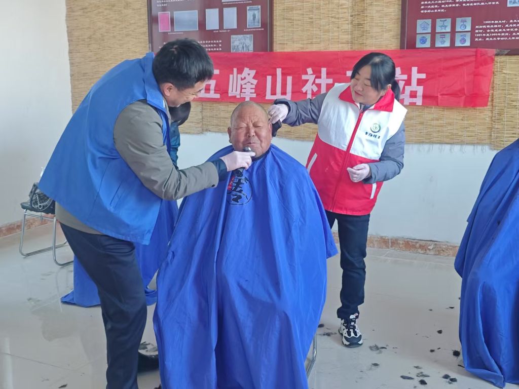 大家热情高涨,忙得热火朝天。这边,一群心灵手巧的志愿者们围聚在桌旁,和馅、擀皮、包水饺,手法娴熟,配合默契。不一会儿,一盘盘排列整齐、饱满可爱的水饺便摆满了桌面,仿佛在诉说着对老人们的美好祝福。那边,几位专业的理发师志愿者早已准备就绪,他们耐心地询问每一位老人的发型需求,然后细心地修剪起来。老人们坐在舒适的椅子上,脸上洋溢着安心与期待。随着剪刀的上下舞动,老人们原本有些凌乱的头发变得整齐利落,他们的精神面貌也焕然一新。
