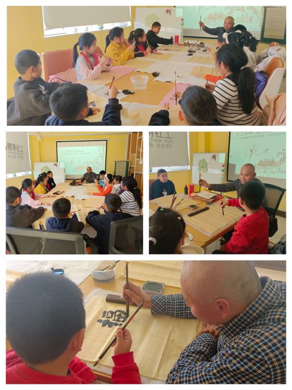 随后,在一片热烈的掌声中,书法老师登场,开始了精彩的书法教学。老师从握笔姿势到运笔技巧,细致入微地教导孩子们如何写出一个饱满有力的“福”字。每个孩子都全神贯注地听着老师的讲解,并在老师的指导下,一笔一划地认真练习。不一会儿,一张张写有“福”字的红纸便呈现在大家面前,充满了新春的喜悦与温暖。所有参与的孩子都将自己亲手书写的“福”字带回家,同时,社工站还将一部分作品赠送给了社区内的居民。这一举动不仅让孩子们体验到了分享快乐的意义,也为整个社区带来了浓厚的文化氛围和节日气息。