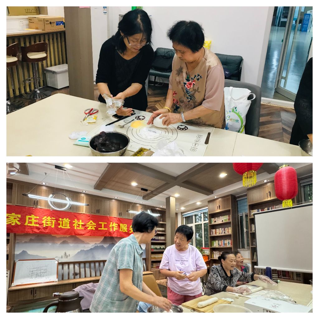活动现场,气氛热烈而温馨。老人们相聚一堂,在社工的指导下,纷纷动手尝试制作冰皮月饼。从搅拌冰皮粉、包裹馅料到压制成型,每一步都凝聚着大家的欢声笑语和团结协作的精神。老人们不仅学习了月饼制作的新技能,更在互动中加深了彼此的了解和友谊。