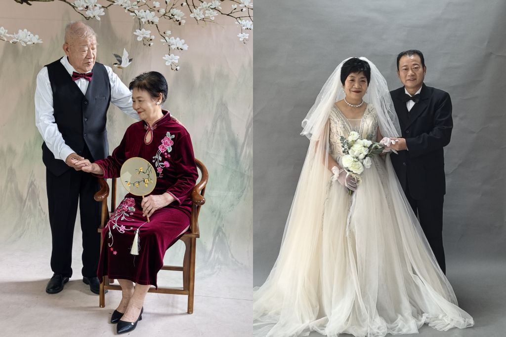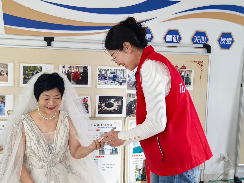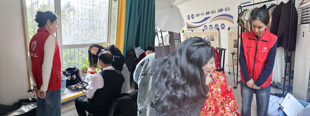 社工们热情地迎接每一位老人,耐心地为他们挑选服装、整理发型和妆容。在拍摄过程中,社工们细心地指导老人们摆姿势,捕捉他们最自然、最幸福的瞬间。“爷爷,您再靠近奶奶一点,笑一笑,非常好!” 这样的话语不断在现场响起。