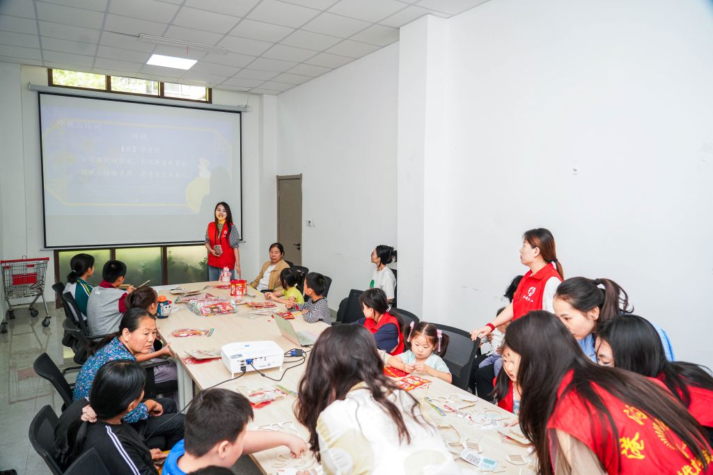 驻站社工及居委会工作人员以真挚的话语向在场的居民朋友致以节日的问候。为充分激发志愿者参与志愿服务的积极性,活动要求志愿者共同参与服务,小志愿者充满活力的带动现场活动氛围,吸引了很多居民的关注。活动现场,社工通过风趣幽默的形式讲解了中秋节的来历、中秋习俗、传说及相关古诗等,从轻松愉快的氛围中学习中国传统文化,孩子及家长听的津津有味。随后的手工制作环节将整个活动推向高潮,扎灯笼作为中秋习俗之一,大家做起来干劲十足,很快在相互帮助中一个个活灵活现的小兔灯笼、传统大红灯笼展现眼前。