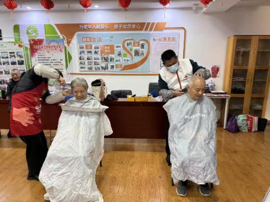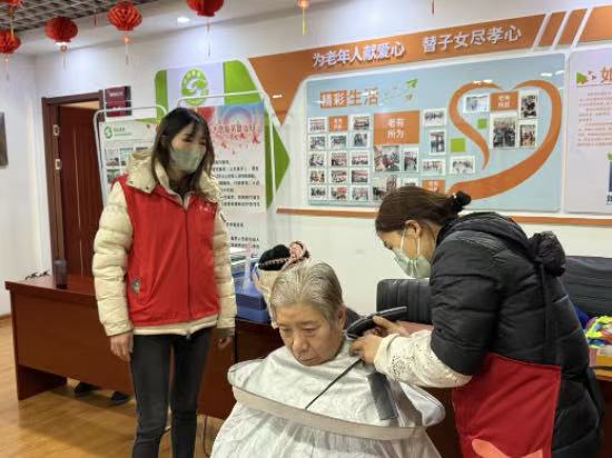 全福街道社工站在开展需求调研时,收到了很多社区老年人的需求,社工结合征集到的需求有针对性地链接社会资源开展相关志愿服务活动。1月15日,全福街道社工站链接到了云天使护理院的志愿者们到名辉豪庭社区开展“全福长者暖冬行”公益理发活动,让老人们在家门口享受更贴心的服务。